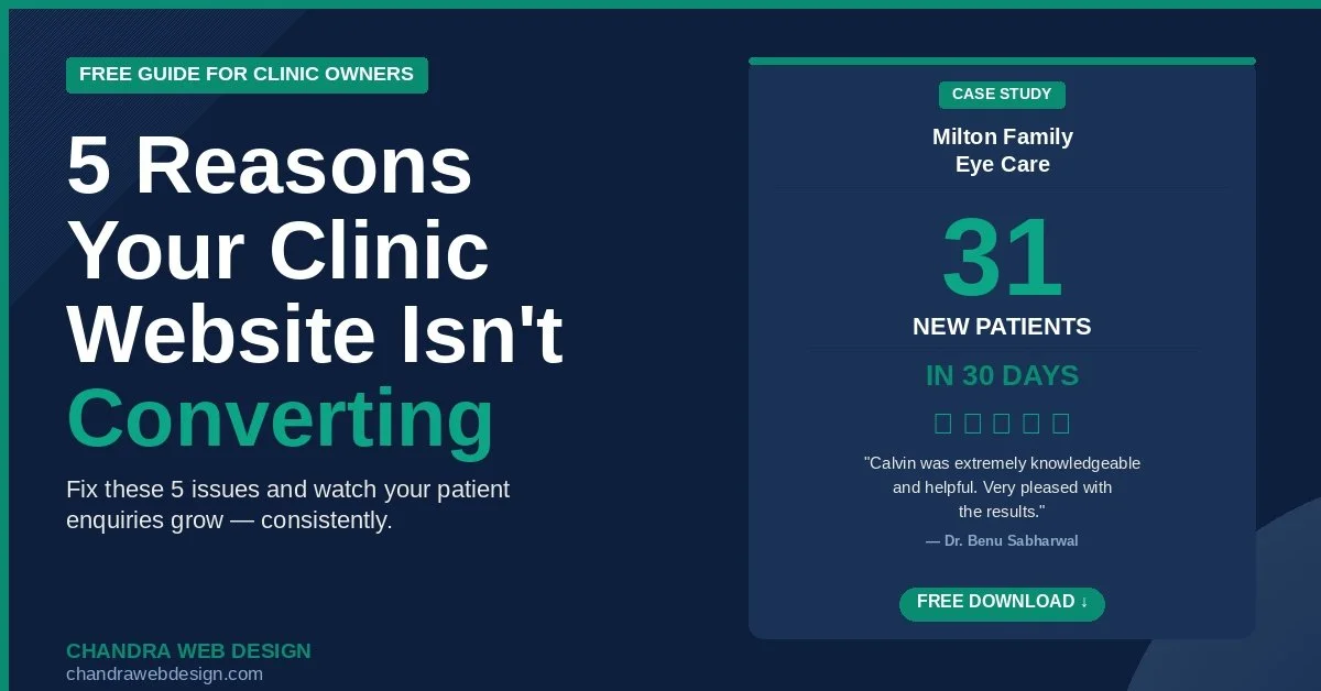 5 Reasons Your Clinic Website Isn’t Converting Fix these 5 issues and watch your patient enquiries grow - consistently. First Name Last Name Email Address GET NOW We respect your privacy. Thank you! Access the report here:https://drive.google.com/file/d/1_8MLT-Ko891sghFheE7ipcSG5AeIXlQ1/view?usp=sharing
