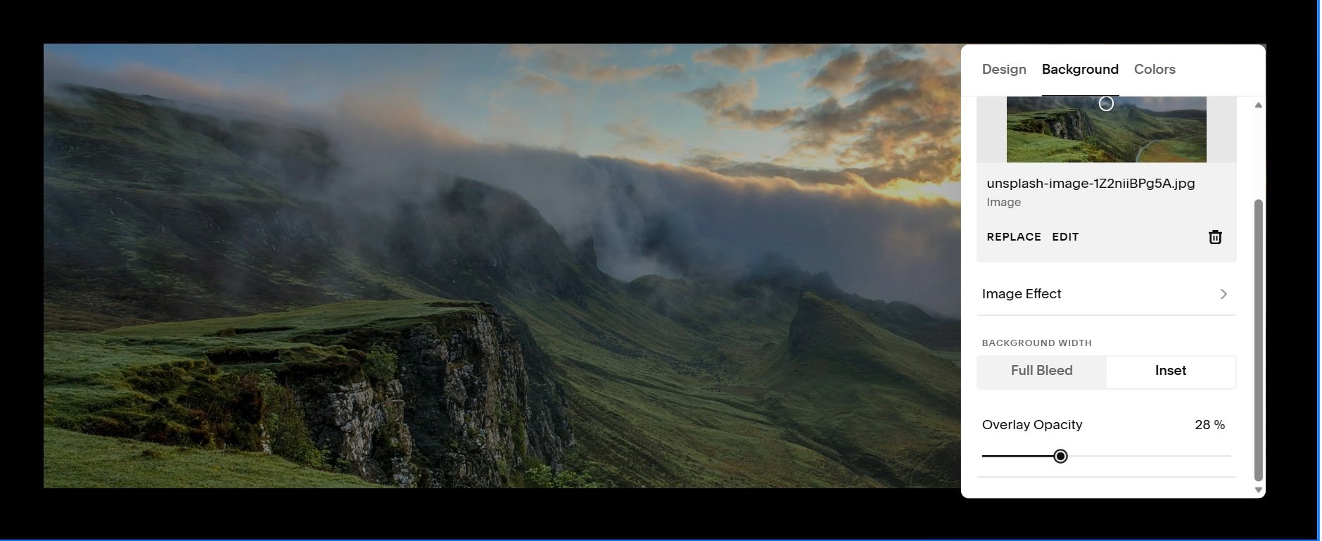 Squarespace gives you two layout styles that determine how your background image sits on the page.